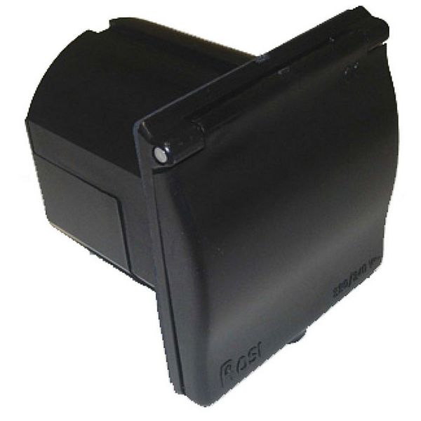 A flush fitting European standard 240 Volt 16 Amp 3-pin inlet. Enclosure is splash proof (IP44). Used as a mains inlet point on caravans/motorhomes. Dimensions: 110mm(L) x 105mm(W) x 85mm(D).
